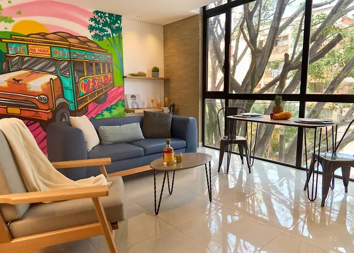 Ubicado a unos 10 minutos en coche del Zoológico Santa Fe, se sitúa no muy lejos de la parada de autobús Los Pinos. Situado a un par de minutos a pie del San Pedro y San Pablo, este apartamento está a 3,1 km del Jardín Botánico Joaquín Antonio Uribe.